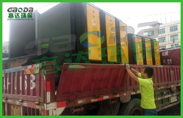 下面是供应东莞XX化工厂废气处理定制的2套20000m3/h UV光解净化器出货图: